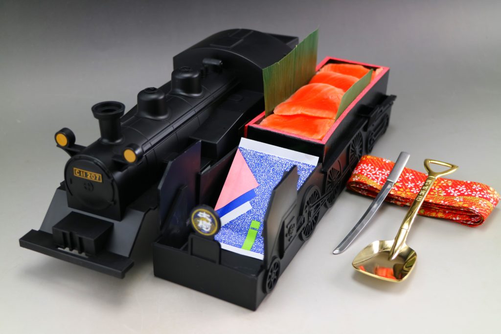 C11 207 SL大樹の刻印と先端を四角にしたオリジナルランチスコップがお弁当に入った夢のある駅弁に仕上げました。